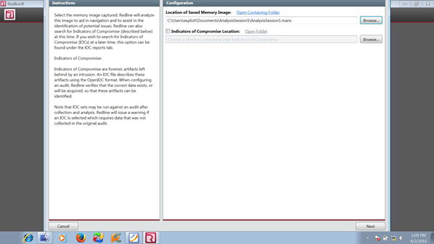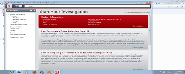 3. Investigation using Redline memory analyzer option