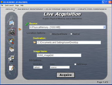 This tool may be used to take a live memory dump or to acquire the physical hard drive of the systems for imaging. We can later use tools such as Volatility