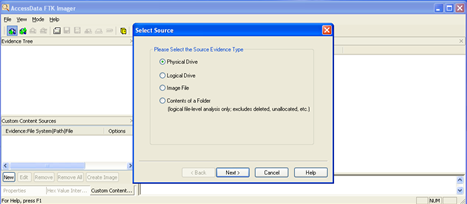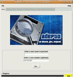 One of the first steps when we do an incident response is to secure the hard disks/storage to bring it back to the lab for investigation. We never do our investigation on the original copy, so it is advisable to make a bit-by-bit copy of the image that has to be analyzed. So now suppose we do not have hardware imagers: We can use Helix to make a bit-by-bit copy of the hard disk. The tool we will use is Adepto.