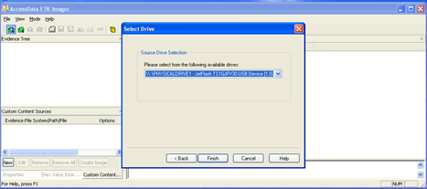Using this is pretty simple. We add the evidence to be investigated and to be imaged as shown below. Here we have a physical USB drive attached to our system, which is a copy of the forensic evidence.