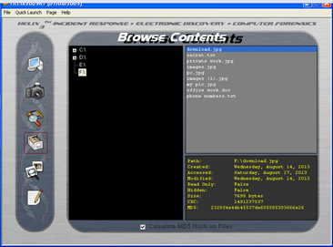 Next we move on to the Browse Contents feature of Helix. We can browse the whole system and any suspected items during an incident response using this tool as well as get minor details about them.