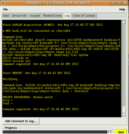 We now check on the logs to see the acquire process. This shows us that the hash verification of the image was successful with our device.