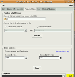 Now let us clone our device with our new USB drive for our forensic investigation. Just put in the source and the destination devices and press Clone.