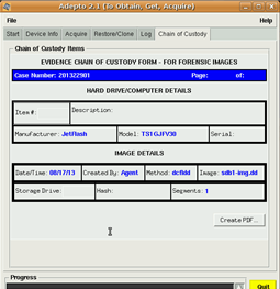 We also have the option to create a chain of custody for the case of events which happened during the cloning and to have a PDF report as well.