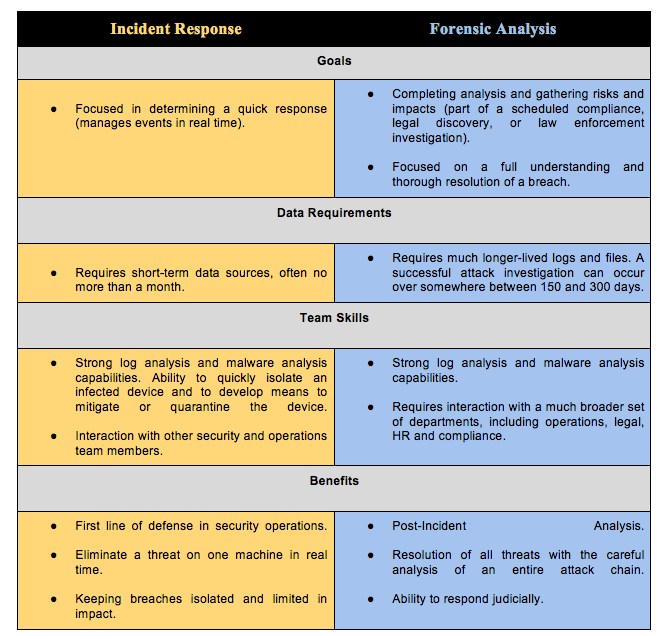 Incident Response Vs. Forensic Analysis