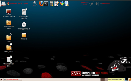 You can simply boot the SIFT iso as a bootable disk or choose to install it as a complete operating system. The default login credentials are: username—sansforensics and password—forensics.