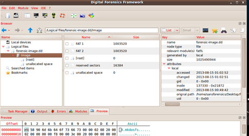 This is a really nice tool for doing digital forensic investigations, since it displays tons of information about the evidence. It is made of different modules based on Python that perform various steps in an investigation, such as file system module fatfs, ntfs to detect the file system. It has a viewer module to display text, images, etc. There are many more, such as Crypto, Hash, Databases, Statistics, etc. These are restricted to specific investigation; for example, the Hash module creates hashes for files to monitor file integrity and similarly the other modules.