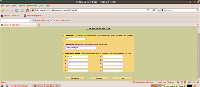 Let us open a new case by clicking "New Case." We have to fill in a few details to create a new forensic investigation case.