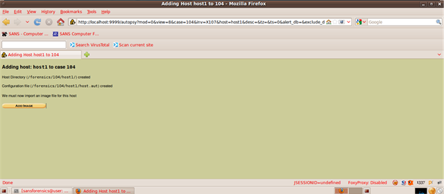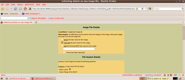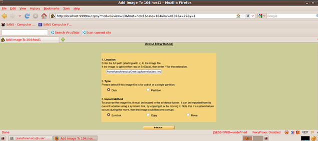 Now we move on to adding our image to the case for doing the forensic analysis. We give the location of the forensic image: