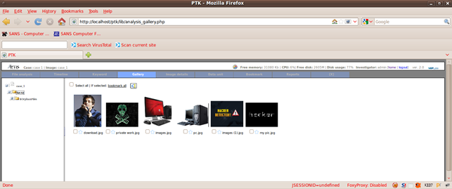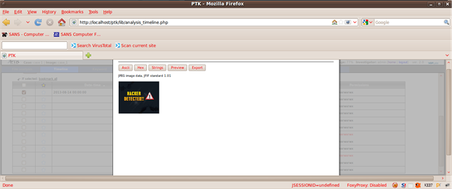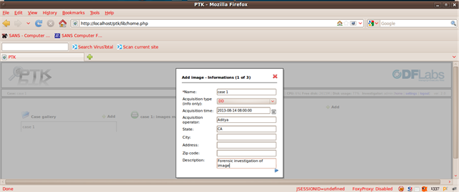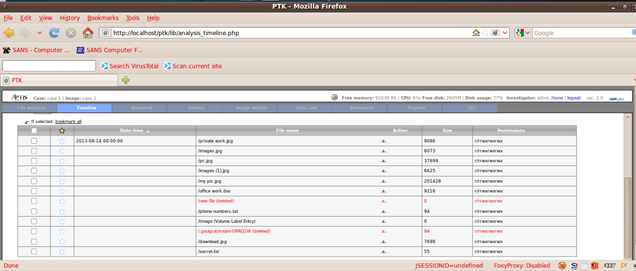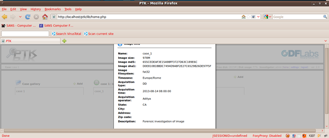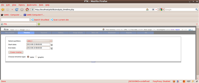 The PTK tool is digital forensic tool and is a GUI for SleuthKit. This uses a centralized database for case management and has the ability to allow multiple investigators to work on the same case. It has an interesting feature of timeline analysis and file timestamps that clearly lists the timeline of all the activities. My personal opinion is that this is one of the best tools to do for digital forensic investigation.