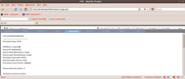 PTK also gives us the option to view complete details of the image being forensically investigated. Here is how we do it: