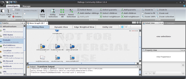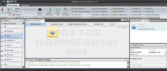 Now let us run all transforms by right clicking the domain entity. We can see a large amount of information being shown to us.
