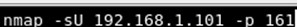 Nmap switches - This switch of Nmap is used to scan a UDP port. Since SNMP runs on the UDP port by default, we need to use this switch. Switch "p" is used to define the port number, hence 161 is followed by switch "p".