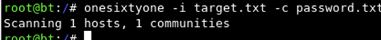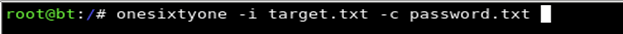 Switch "i" is used to input the target file which we created previously. This will be treated as a target list and every host mentioned in the input file will be tried one by one against the password dictionary that we fed to the tool using switch "c." It is a very light weight and quick tool and produces faster result – thus avoiding any delays for penetration testers.