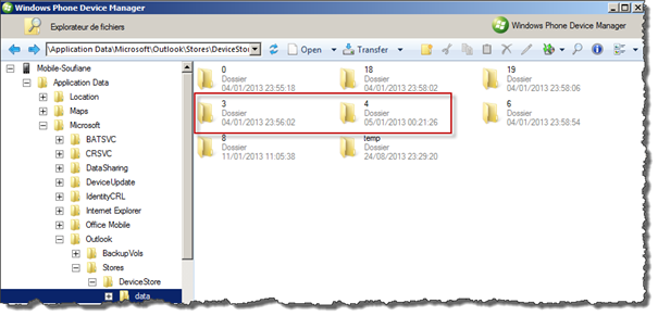 - Application Data, contains Internet Explorer, Outlook, Maps and all data related to installed applications on the phone