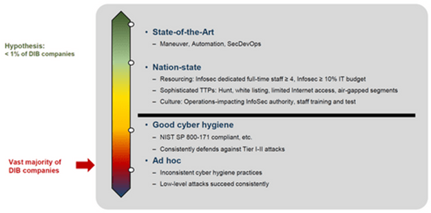 The Cybersecurity Maturity Model Certification is a solution that aims to enhance the cyber-posture of companies throughout the DIB multi-tier supply chain in order to reinforce the protection of CUI residing on company networks. Third-party auditors will perform CMMC checks and evaluate companies against a maturity scale; contracting officers will decide which levels are required for all bid contracts. In essence, “the CMMC appears to be a strategic and well-thought-out solution to prioritizing DFARS enforcement, while at the same time, helping small businesses improve cyber hygiene and slowing the progress of those adversaries responsible for $600B of the government’s IT and R&D losses,” as Thomas Taylor writes.