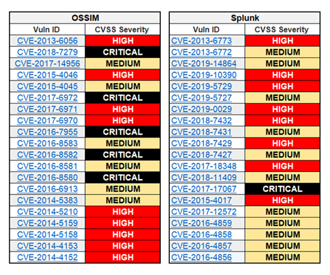 Figure 2: Vulnerability statistics for OSSIM vs Splunk (source: NVD)