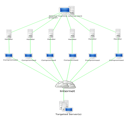 A distributed denial-of-service (DDOS) attack also involves sending forged requests of some type to a very large number of computers that will reply to these requests. Using Internet Protocol address spoofing, the source address of the target is set, which means all the replies will go to (and flood) the target. This type of attack is called the 'REFLECTION DDOS ATTACK'.