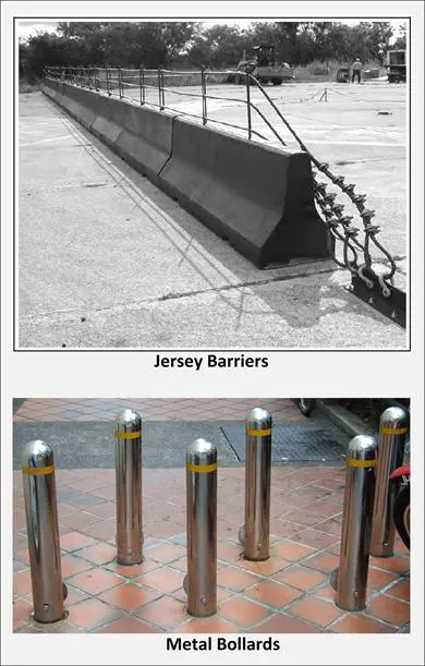 Controlling vehicle movement requires strong physical devices, such as bollards and jersey barriers, to control traffic flow (see Figure 13-10). In addition to providing intra-site traffic control, bollards, large rocks, jersey barriers, or other similar anti-vehicle controls help prevent intruders from crashing a vehicle through a perimeter fence.