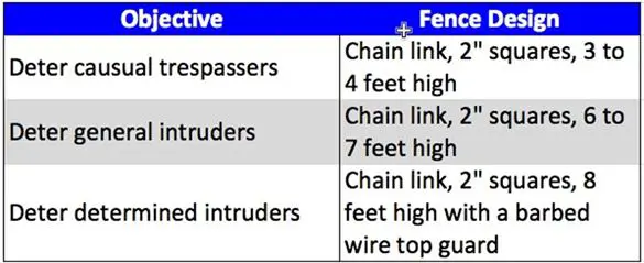 Table 13- 1: Fence Design and Expected Outcomes