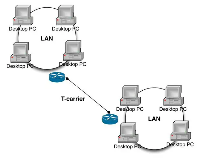 Consider the cost for an organization needing multiple B2B and many F2F communication paths. The monthly cost might run into six figures, depending on the distance between endpoints and the bandwidth required. Further, an additional T-carrier is needed for each path added. This limits flexibility, results in ever-increasing costs, and hinders quick reaction to changing business needs. (It can take weeks to install a new T-carrier.) One common use for point-to-point connections is permanent connectivity between endpoints in a wide area network (WAN), as shown in Figure 9-3.