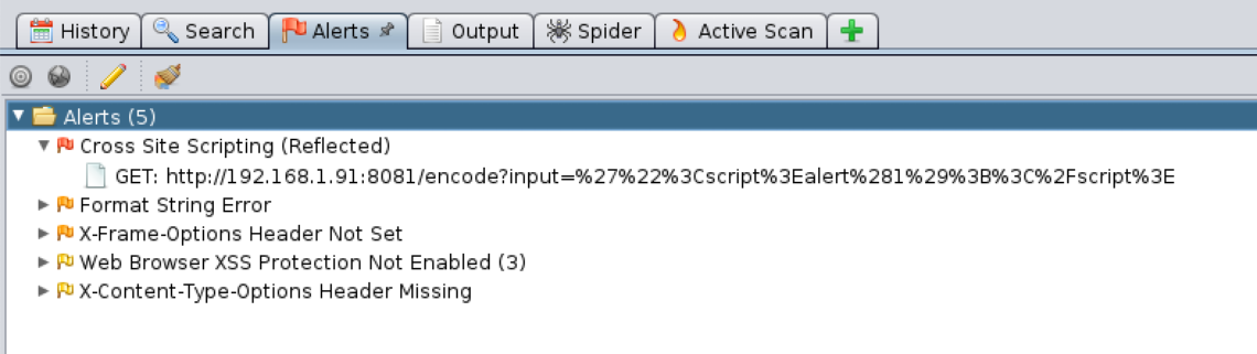 In addition to it, monitoring the container traffic can also detect attacks attempted against the application running as well as the container itself. Application layer vulnerabilities such as SQL Injection, Cross Site Scripting, Remote Command Execution may be identified by using traditional web vulnerability scanners. The following figure shows automated scan results from OWASP ZAP run against an application running in a container.