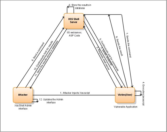 XSS shell is a powerful tool developed in ASP .NET which runs as a backdoor between the attacker and the victim. With XSS, an attacker has only one shot to execute any kind of attack on a victim. Once the victim navigates from the malicious page, the attacker's interaction or the communication with the victim ends, whereas using XSS Shell helps the attacker to open an interactive channel with the victim and communicate with him by sending its commands. Here even if the victim navigates from the vulnerable/malicious page, the attacker can continue his communication as the XSS Shell Re-generates the page.