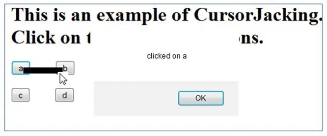 This is typically similar to the clickjacking attack, however in this issue we will focus on the mouse cursor.