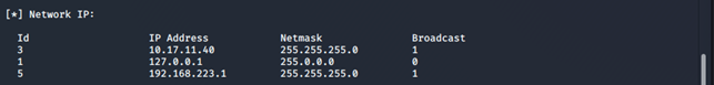 The screenshot above shows network statistics of the target. We can also view network IP information, as shown below: