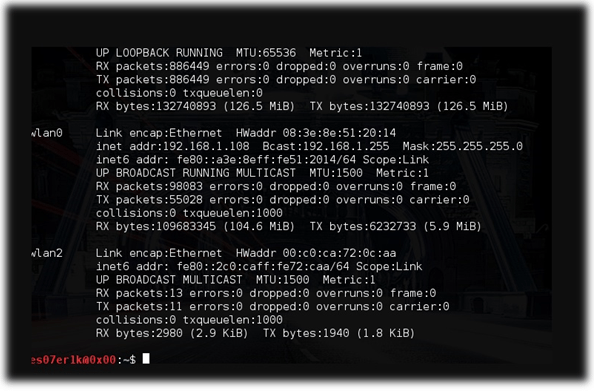 2.Next, we actually put the wlan2 interface into the monitor mode by running the command “sudo ‘airmon-ng start wlan2.” This will create an interface mon0.