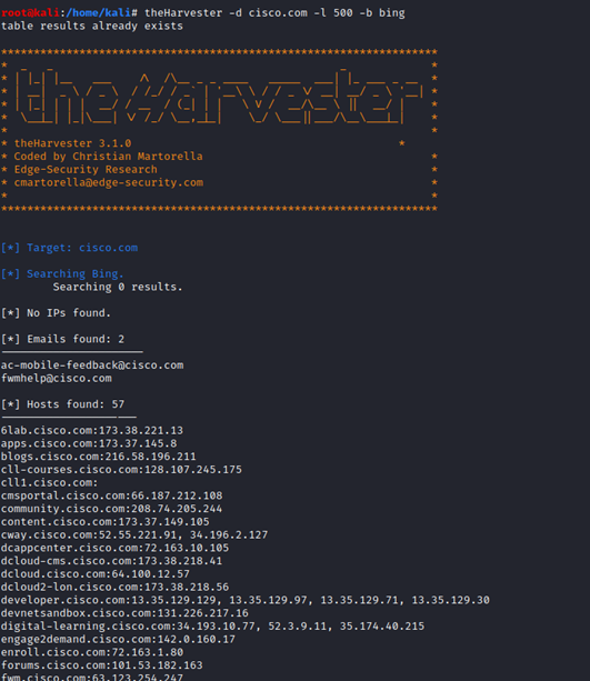 A hacker gathers all possible data they can using OSINT. Once the data gathering is complete, the hacker then analyzes all useful data. For example, “theHarvester” is an awesome tool for gathering IP, email, subdomains of a website/organization by using a search engine, e.g., Google, from a public source.