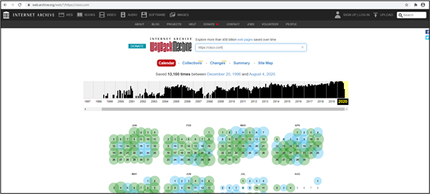 The hacker would simply visit the Wayback Machine and enter the website address to browse the history of a website. This would provide a calendar of website history, where you can go to any past date and visit the snapshot of that day. This also lets you know how many snapshots were taken on a particular day with the time mentioned.