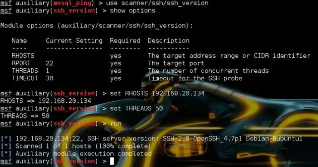 SSH is a secure protocol, but vulnerabilities in various implementations have been identified. You never know when you might get lucky and come across an old machine that hasn't been updated. You can use the Framework's ssh_version module to determine the SSH version running on the target server.