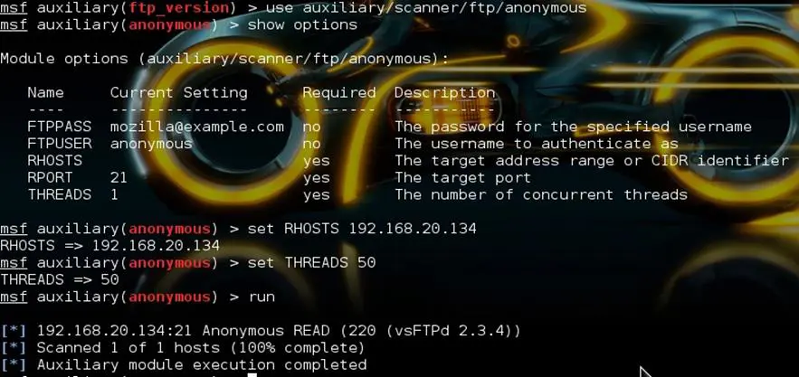 FTP servers are often the easiest way into a target network, and you should always scan for, identify, and fingerprint any FTP servers running on your target. According to the vulnerability, you can launch an attack and get into the target system.