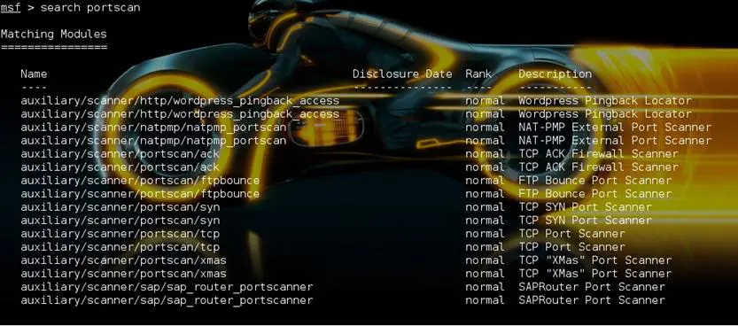 To see the list of port scanning tools that the Framework offers, enter the following.