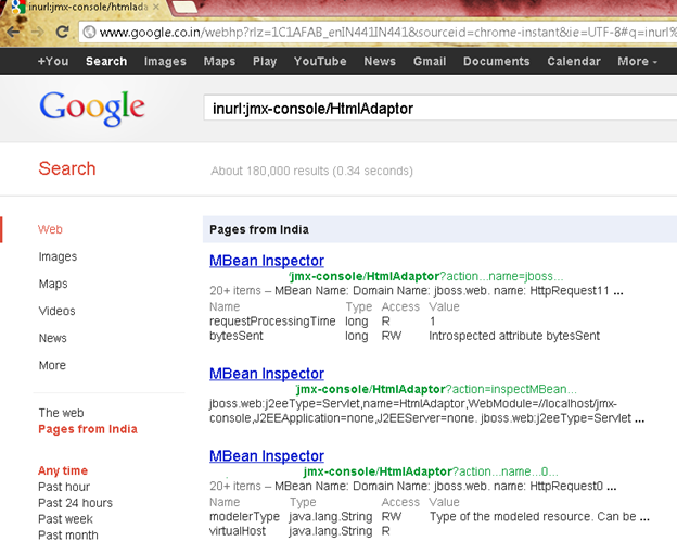 Now after searching for jmx-console in Google using one of the dork, we choose one of the random URL and we can access the jmx-console. At the same time, there are few servers which do ask for authentication like the image shown below,