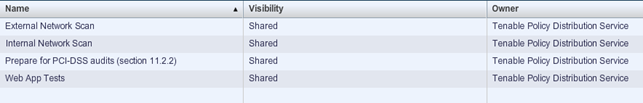 Nessus policies specify what Nessus will do when the scan is being run. Default Nessus policies are External network scan, Internal network scan, PCI-DSS audits, and Web application scan, as we can see in the picture below.