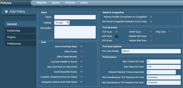 The Basic field in General tab allows us to name the scan policy, define its visibility and describe the policy.