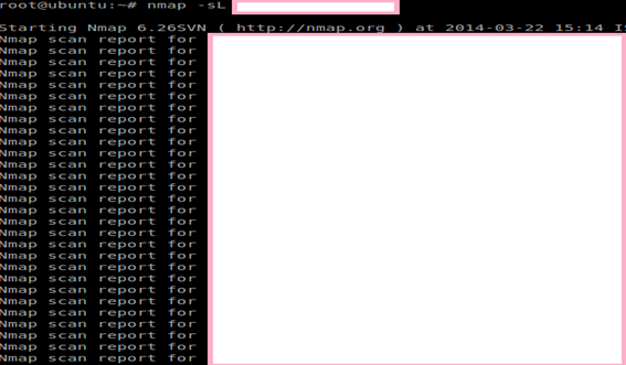 Syntax:nmap –sL target