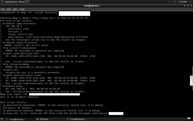Now I m going to run a ping scan with discovery mode on (script) so that it will try all possible methods for scanning, that way I will get more juicy information.
