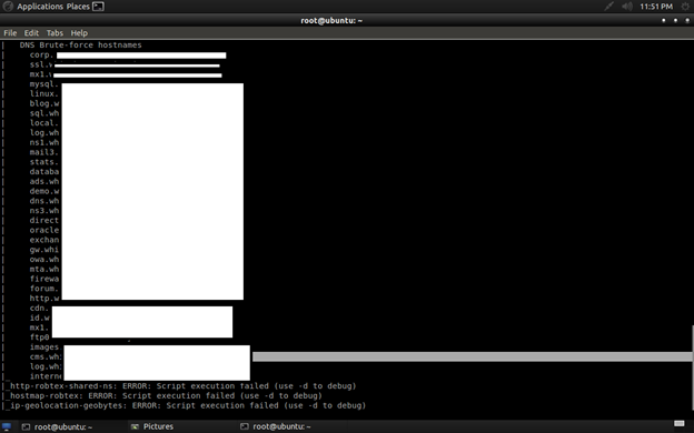 Can you see the interesting ports and protocols? You can see dns-bruteforce found that host contains some blog, cms, sql, log, mail, and many more. So here we can perform SQL injection, the blog may be WordPress, Joomla, etc., so we can attack for a known CMS vulnerability, and obviously the method will be black-box pentesting.