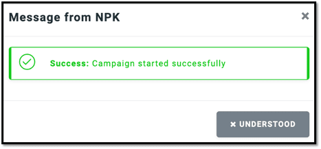 Once you have successfully set up your campaign, you should see the screen below. Click on "Understood" to proceed. The campaign configuration is straightforward and does not require too much effort.