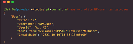 Once I had done that, I verified my credentials with the 'iam get-user' AWS CLI command. Please remember that you should use a fresh AWS account to keep things clean and well organized. It is recommended that you do this via the organization's console in AWS. This is shown below: