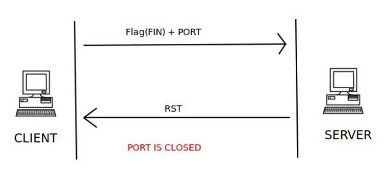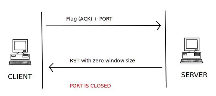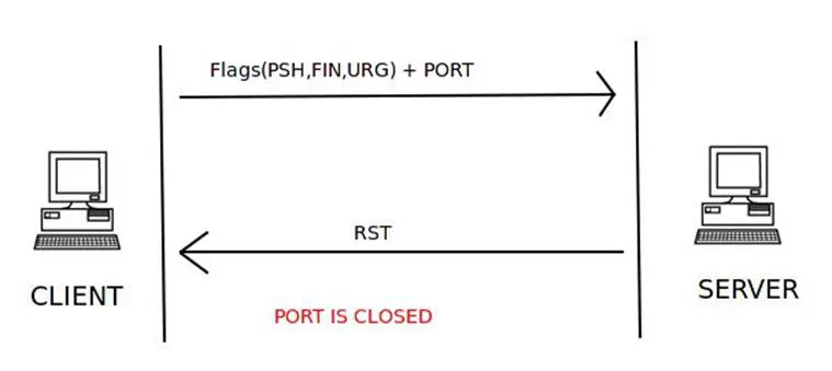 The closed port check is same as that of TCP connect scan. The server responds with an RST flag set inside a TCP packet to indicate that the port is closed on the server