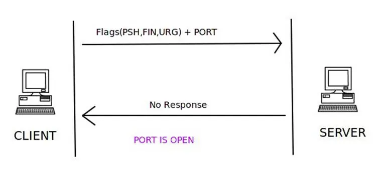 In the XMAS scan, a TCP packet with the PSH, FIN, and URG flags set, along with the port to connect to, is sent to the server. If the port is open, then there will be no response from the server.