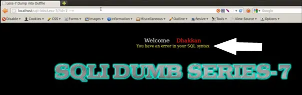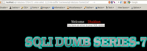 We again get an error in the Mysql server for incorrect syntax.