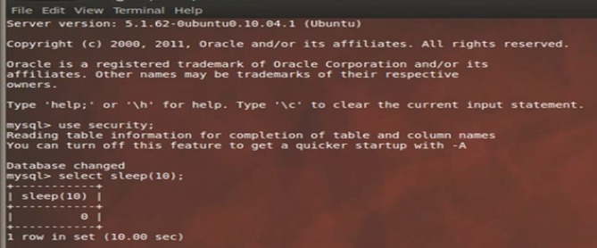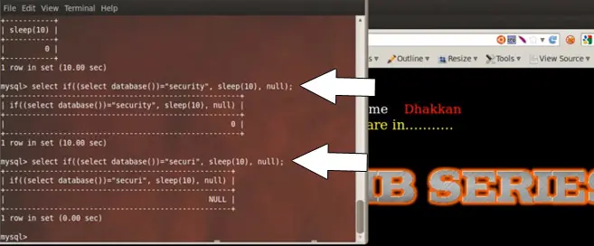 Similarly if we try to run the query select if ((select database()="securi", sleep(10), null);