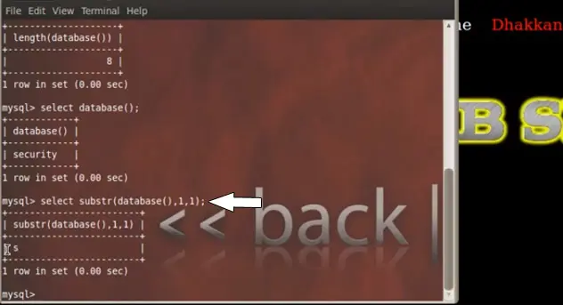 does not belong to the database name, but E also gives true. Now we use another technique, in which we change the way of querying the database and it responds back. There is a function to break up the strings into part; it is called sub string. The query is